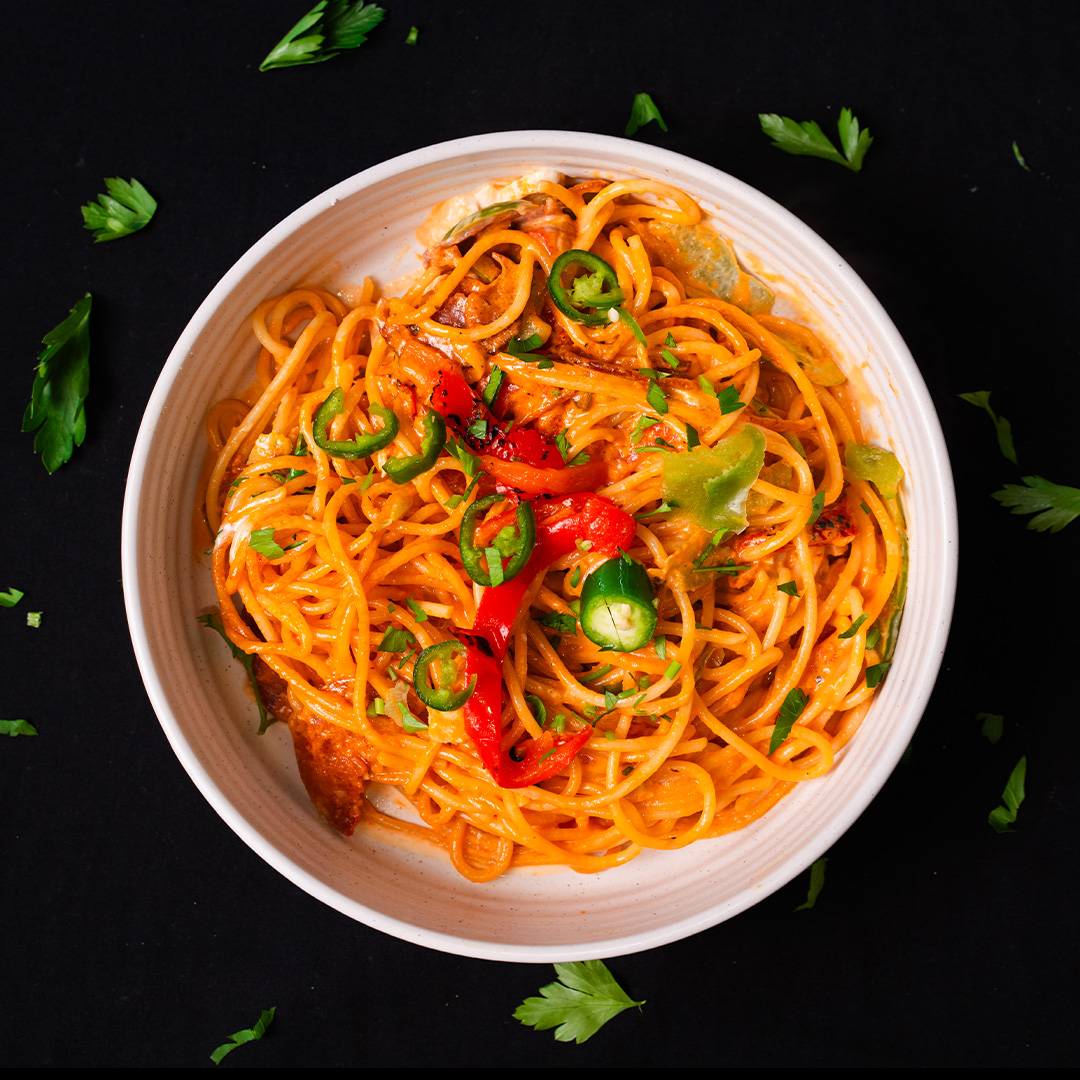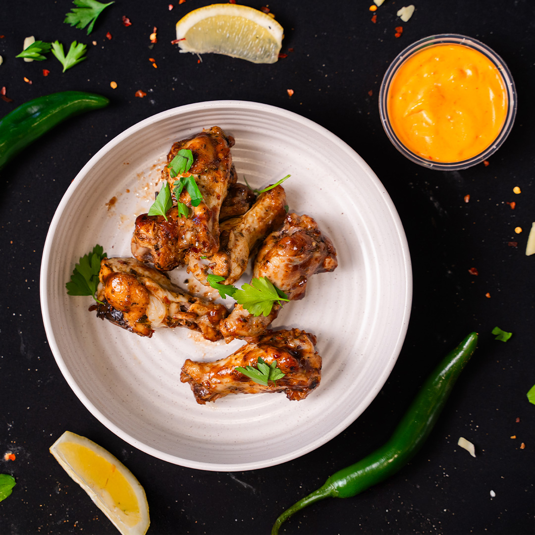 Lrg Chilli Chicken Garlic, Sweet Chilli, Tomato Base, House Cooked Chicken, Shallots, Dressed with Garlic Aioli, Green Chilli and Slaw